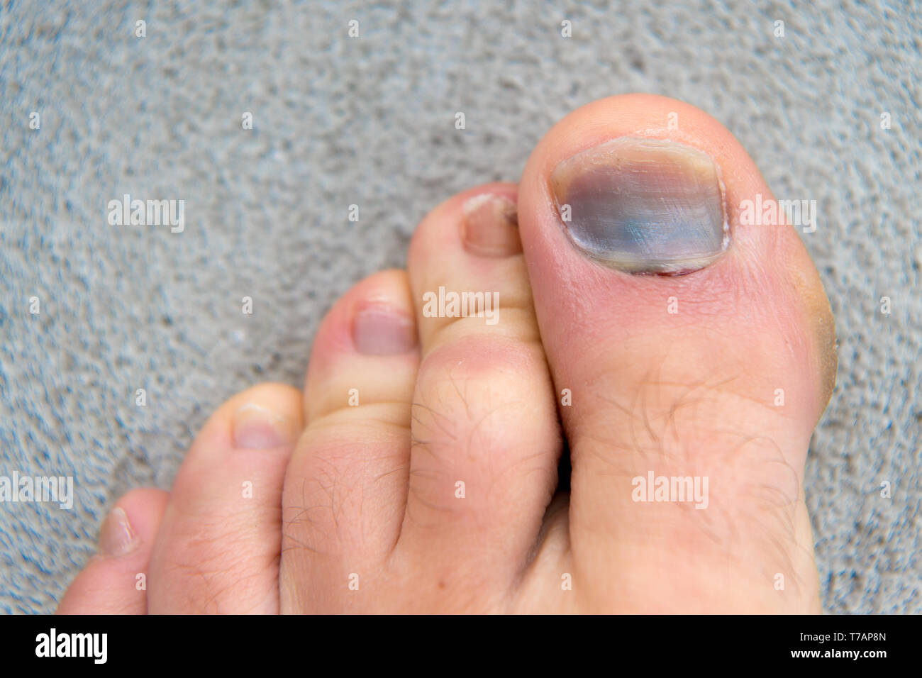 hämatom unter nagel. um verletzungen zu den nagel auf den fuss nahaufnahme hamatom unter dem nagel kopieren trauma hamatom stockfotografie alamy