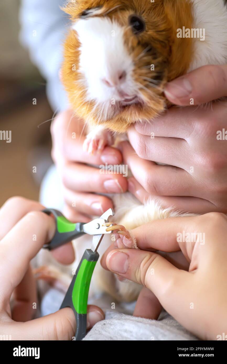 meerschweinchen nägel schneiden. krallen schneiden von meerschweinchen mit nagelknipser stockfotografie alamy
